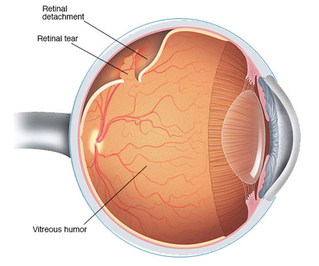 Detachment usually begins at the thin peripheral edge of the retina and extends gradually towards the more central areas. The patient perceives a shadow that begins peripherally and grows in size, slowly encroaching on the central vision.
